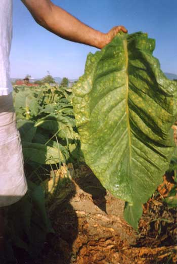 stipato. Lasciate all’acqua e al sole le foglie di tabacco Kentucky