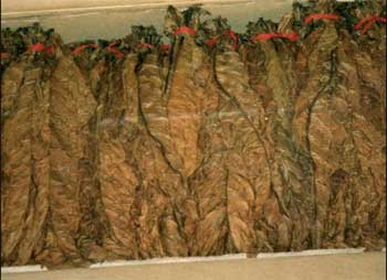 cura del tabacco, dove sono infilzate su spaghi che sono poi fissati a